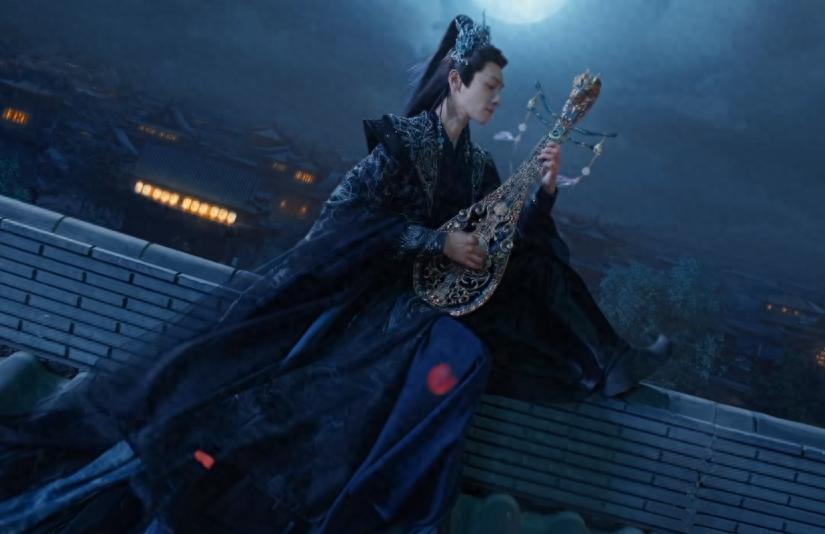 一个唐俪辞(罗云熙饰)模样的“黑衣琵琶客”坐在屋顶,轻声慢言:尔等罪孽深重,配得上一曲,音杀。